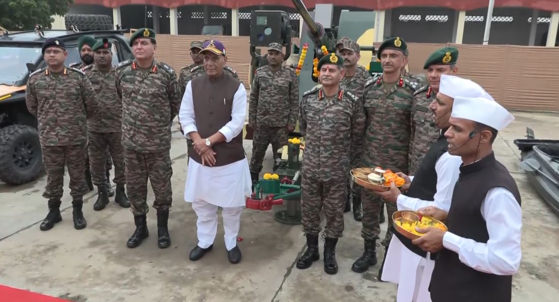 Singh performed the Shastra Pooja of the L-70 Air Defence Gun at the Bhuj Military base here, which was successfully used during Operation Sindoor, on the occasion of Vijayadashami.
