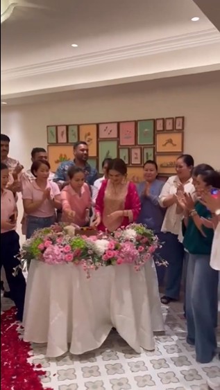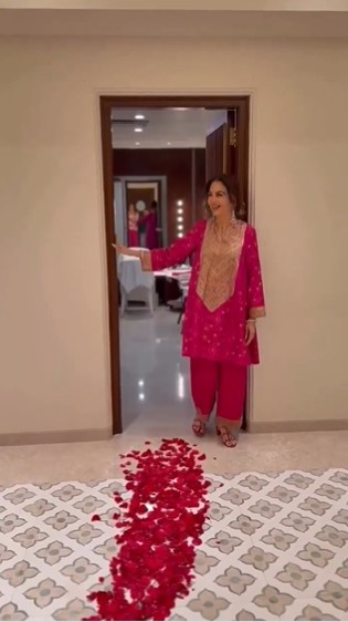 A video now circulating online shows Nita Ambani surprised as she enters a room. As soon as she entered the room, Nita Ambani was welcomed by staff with birthday chants and flower petals on the floor. She was then seen cutting the cake and celebrating the birthday with fans.